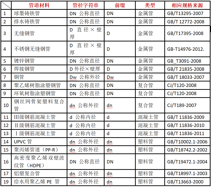 复合管、结构壁塑料管等管材,管径应按产品标准的方法表示;